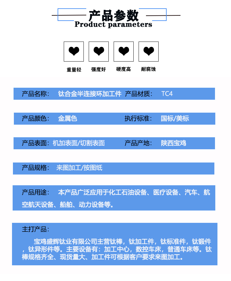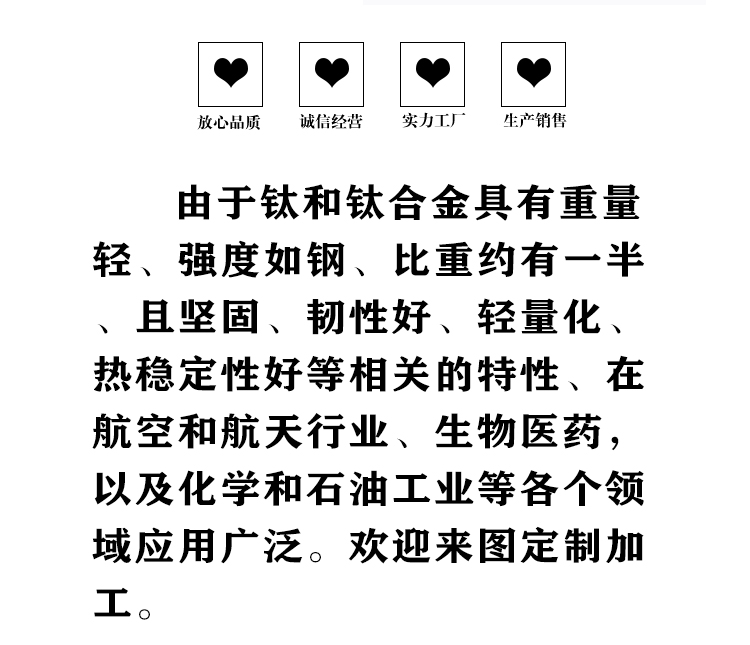 寶雞盛輝鈦業有限公司是一家主要從事鈦及鈦合金棒,鈦環,鈦法蘭及鈦合金板材的高新技術企業,公司提供鈦環,鈦合金棒批發,鈦環的生產工藝服務,以人為本,質量取勝為宗旨:18791863990,18740375975