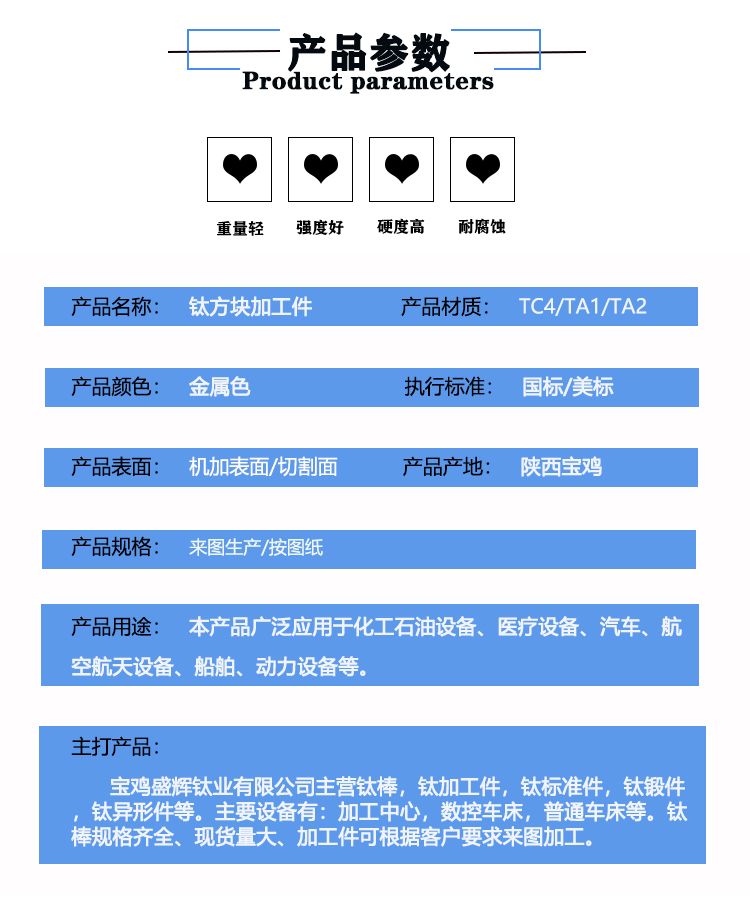 寶雞盛輝鈦業有限公司是一家主要從事鈦及鈦合金棒,鈦環,鈦法蘭及鈦合金板材的高新技術企業,公司提供鈦環,鈦合金棒批發,鈦環的生產工藝服務,以人為本,質量取勝為宗旨:18791863990,18740375975