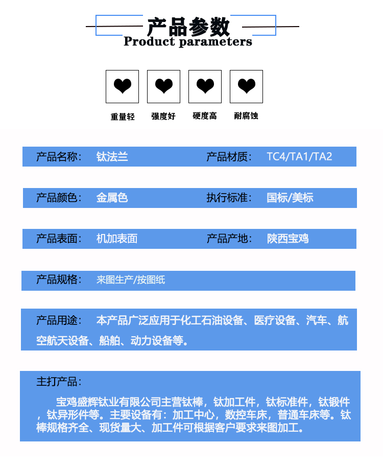 寶雞盛輝鈦業有限公司是一家主要從事鈦及鈦合金棒,鈦環,鈦法蘭及鈦合金板材的高新技術企業,公司提供鈦環,鈦合金棒批發,鈦環的生產工藝服務,以人為本,質量取勝為宗旨:18791863990,18740375975